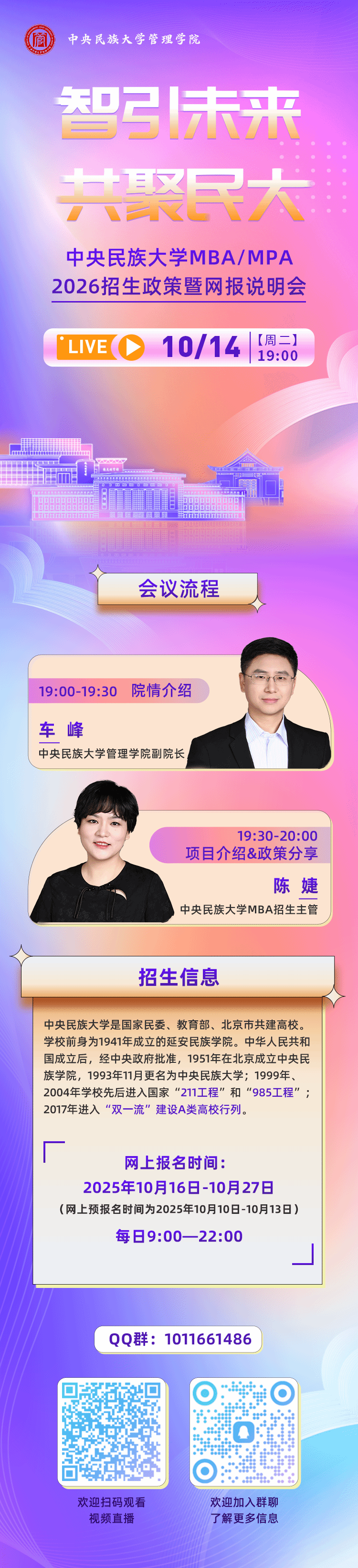 中央民族大学MBA/MPA2026招生政策暨网报说明会火热来袭