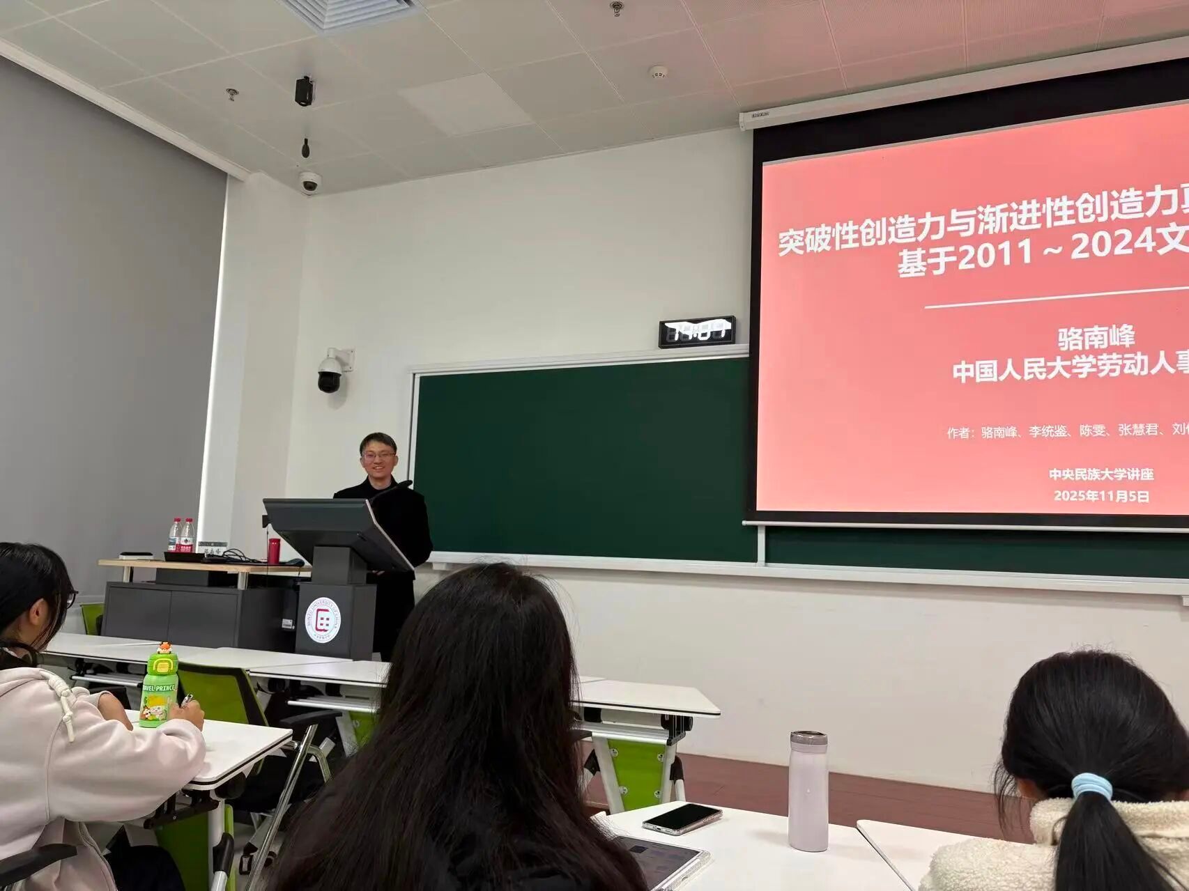 11月5日,中央民族大学明德讲坛“学术前沿与研究方法”系列讲座在丰台校区致远楼110成功举办。本次讲座特邀中国人民大学劳动人事学院骆南峰教授担任主讲嘉宾,以“突破性创造力与渐进性创造力真的区分开了吗?——基于2011~2024文献的分析”为主题,系统分享其研究成果与学术探索历程。五星体育直播