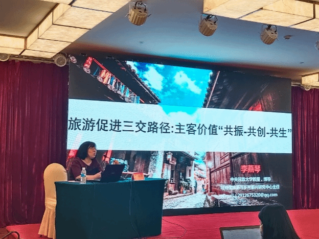李燕琴教授围绕旅游如何促进各民族交往交流交融这一主题,开展“旅游促进三交路径:主客价值‘共振-共创-共生’”专题讲座。