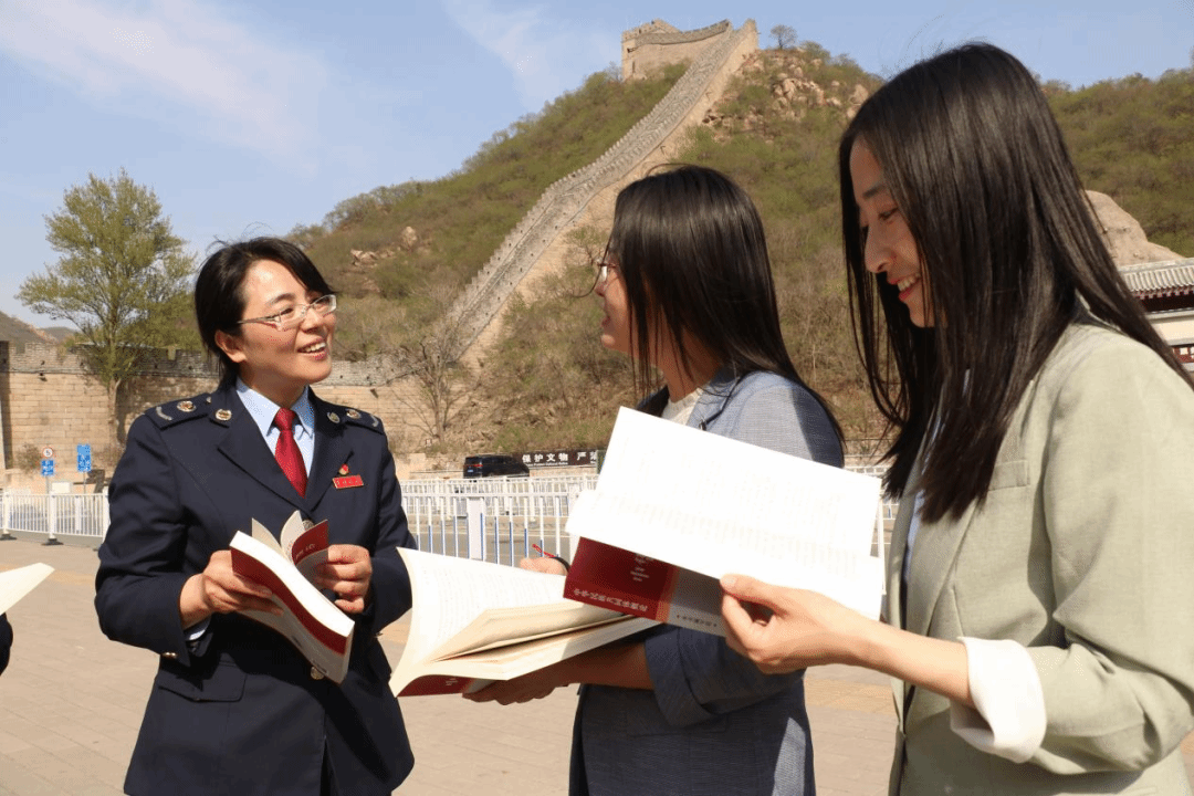 当天,党员们与税务局干部齐聚水关长城脚下,举行了一场别开生面的税收宣传活动。现场设立了醒目的咨询点,摆放了各类宣传展架与海报,党员和税务干部们热情地向过往游客发放宣传资料,详细解读税收政策,耐心指导个税汇算。同时,向游客播放税收优惠政策、个税汇算、社保费等税收宣传短片,让税收知识深入人心。为丰富活动形式,增强互动体验,税务干部和党员们还邀请游客参与绘制税收宣传和长城主题木片画、石头画,将税收理念与传统文化相结合,让游客在轻松愉快的氛围中感受税收的重要性。
