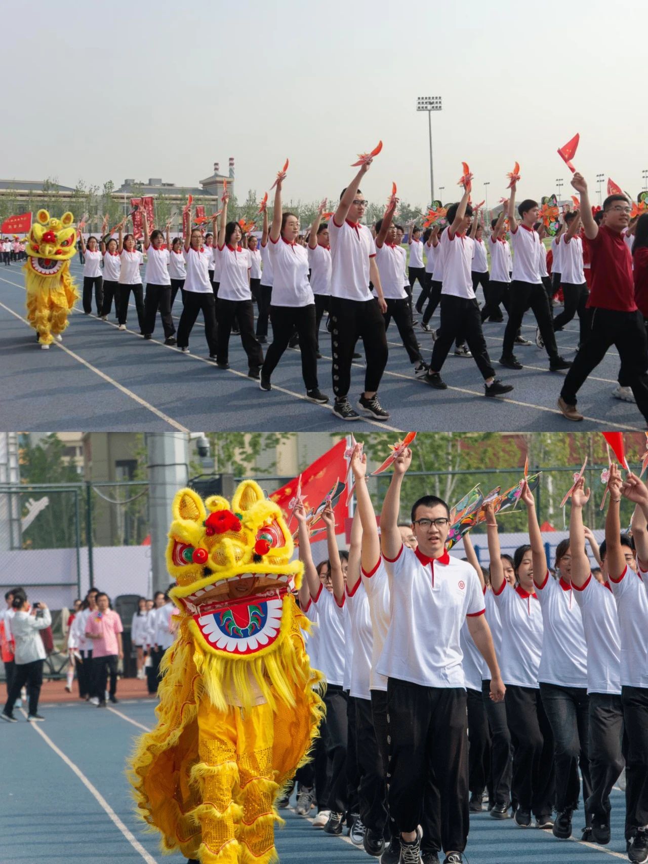 “凌云腾飞,尽展光辉。青春无畏,逐梦扬威。” 领导老师们和学生方阵一起伴着铿锵的口号向大家走来,携手同行,热情洋溢,定格师生同庆的美好瞬间。