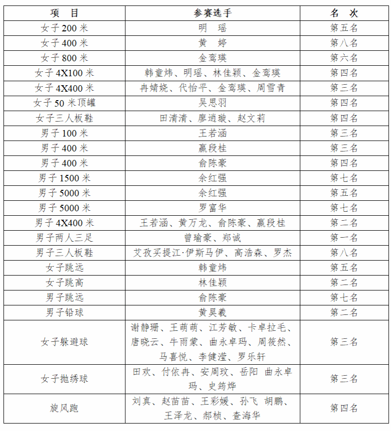 荣获学生组团体总分第四名、女子总分第三名、男子总分第五名以及精神文明奖,这是集体的勋章,凝聚着汗泪与梦想,同行路上,心手相牵再创辉煌!