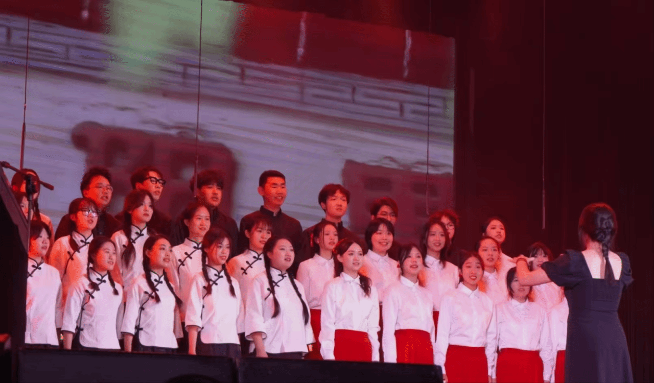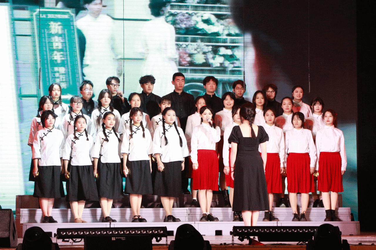 聚焦“青春之夜”的舞台,从一段声情并茂的朗诵开始,掷地有声的话语,仿佛穿过时空隔阂,将听众带回那个风雨如晦又英雄辈出的年代。“闪闪发光的你,黎明前风尘仆仆的你,有不屈的骨气。”震撼人心的合唱伴着翥凤翔鸾的独舞,生动展现了管院青年“背靠山海,面向红星,延续造梦的志气”!